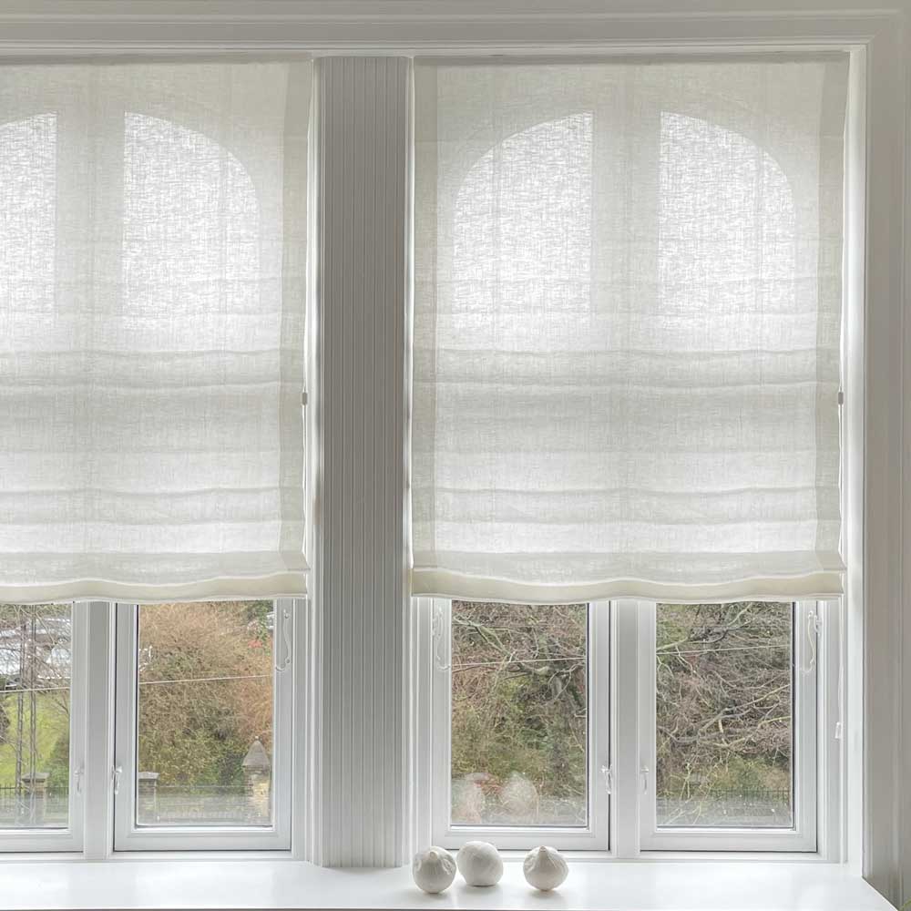 Raffrollos - Weißes Leinen - Kordelzug - 20-120 cm breit